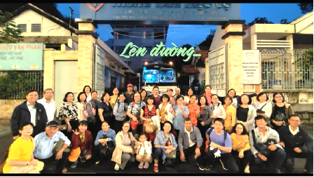 4g30 Thứ Bảy 20/07/2024, con “cưỡi ngựa sắt” đến Trung tâm Mục Vụ Tổng Giáo phận Sài Gòn. Đúng 5 giờ con tới trước cổng Trung tâm, có vài anh chị em đứng đợi, người gác cổng mở cửa. Con và anh chị em được chỉ dẫn gửi xe ở nhà kho. Buổi sáng, báo hiệu thời tiết hôm nay mát mẻ vì đêm qua trời mưa. 5g18 xe đến. Đoàn chúng con gồm 47 người, cùng chụp hình lưu niệm trước cổng TTMV.